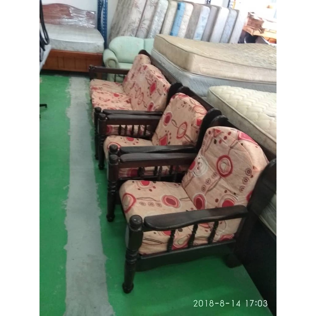 Ready Stock Sofa Kayu Lama 3 1 1 Seater Secondhand Barang Terpakai Shopee Malaysia
